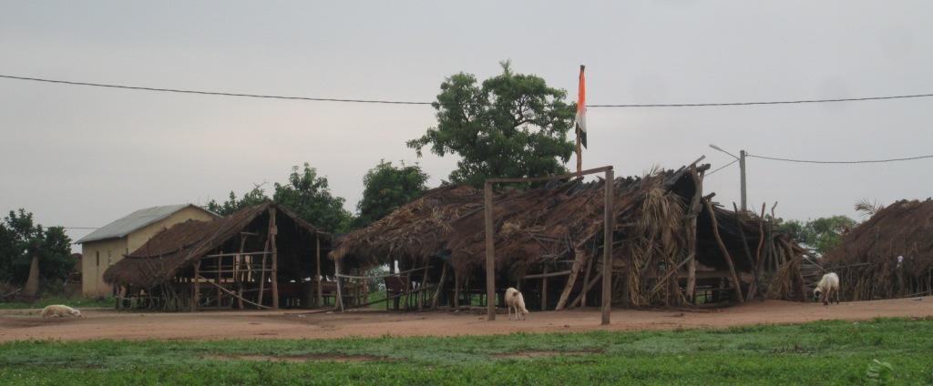 Des kilomètres plus loin, nous entrons dans la circonscription de Ferkessedougou, le bled s’appelle LAMEKAHA 1. De loin on aperçoit une école en construction, au fond. Elle sera surement ouverte l’année prochaine, comme celle en face de FINDELE. Mais en attendant, les instituteurs n’ont pas voulu se tourner le pouce, prétexter qu’il n’existe pas d’infrastructure, bloquer l’accès au savoir à ces enfants broussards du Nord ivoirien, qui ont, même après 6 ans passé à l’école primaire, du mal à faire une phrase simple, sans y ajouter un peu de leur ethnie : le dioula, le senoufo, le lobi…