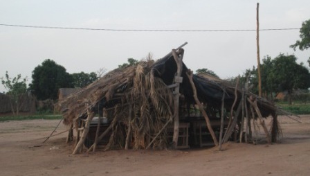 En face d’une pancarte indiquant que nous sommes à FINDELE, s/p de Nafana dans le département de Kong, entre des paillotes qui s’apparentent à des taudis d’orpailleurs clandestins, ou d’extracteurs de KOUTOUKOU, flotte le drapeau national Orange Blanc Vert, sur un mat soigneusement dressé. Les tenants de ce lieu ont pris le soin d’y faire une décoration de fortune avec des pierres.